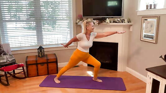 Dani D Mature Yoga Stretch 3 Yellow Leggings And Pink Toe Nails