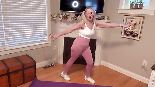 67-year-old, porn star, pink leggings, yoga