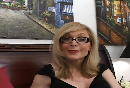 Splendid cougar with glasses gropes her glorious figure
