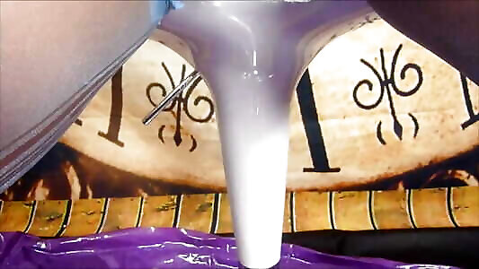 I masturbate my wet teenie slit with a large glass fake penis!!