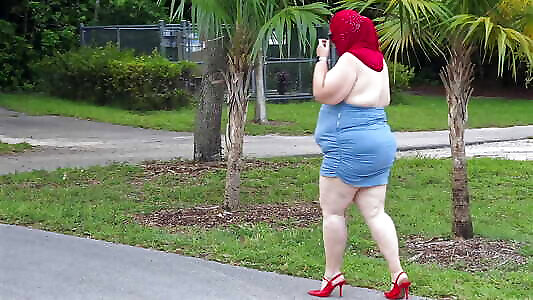 white mature busty milf in mini dress showing off big juicy ass and flashing pussy close up - pissing in public - BBW SSBBW butt