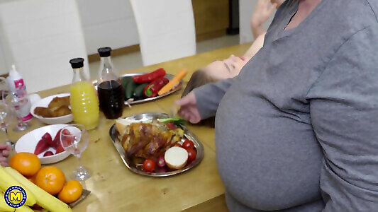 MATURE4K. Man makes huge-chested mature doll lick trunk with her gash