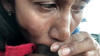 Blow minded black haired trampy old chick swallows fresh penis deep jaws
