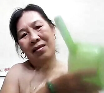 Granny gives her Asian coochie her first ejaculation and internal cumshot!