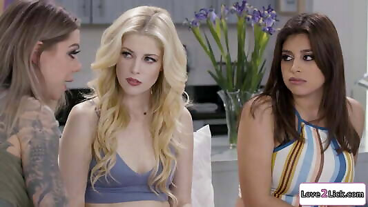 Blonde has a 3 way with her Latina ex and tattooed fiancee