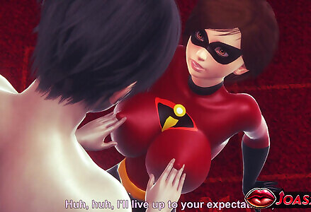 Helen Parr The Incredibles Gets an Orgasm from Breast Play and Cunnilingus - Fingering Her Tight Pussy in 3D Animation