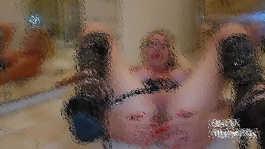 Old and short haired headlock figure deepthroat lady dildoing her muff after a shower