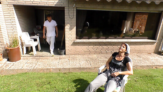 German old Cleaning Housewife seduces from couple for threesome FFM
