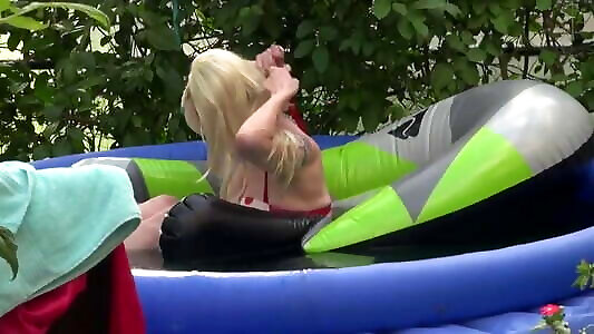 Mind-blowing superslut in undergarments rides a good-sized spear while ash-blonde babe looks on