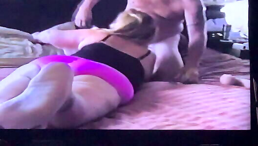 Mature slut suck lovers cock then ride it on the bed to cumshot