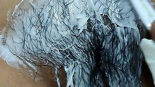 Immensely hairy twat get waxed and trimmed until she is clean shaved