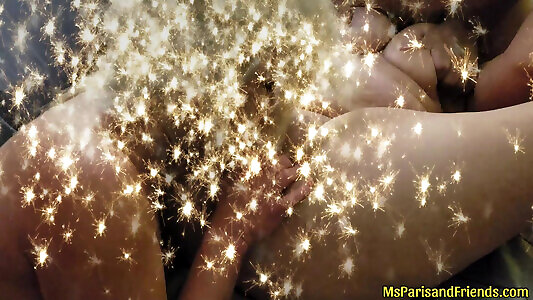 so close and so juicy, she thrusts her dick deep into her pussy and screams loudly