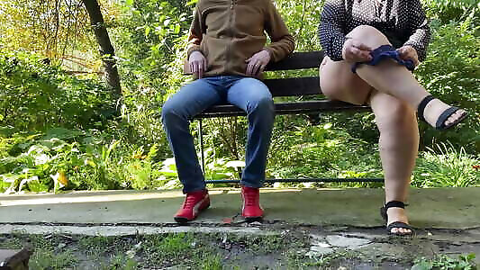 Mother-in-law sucks my dick in a public park 3some big breast swallows cum